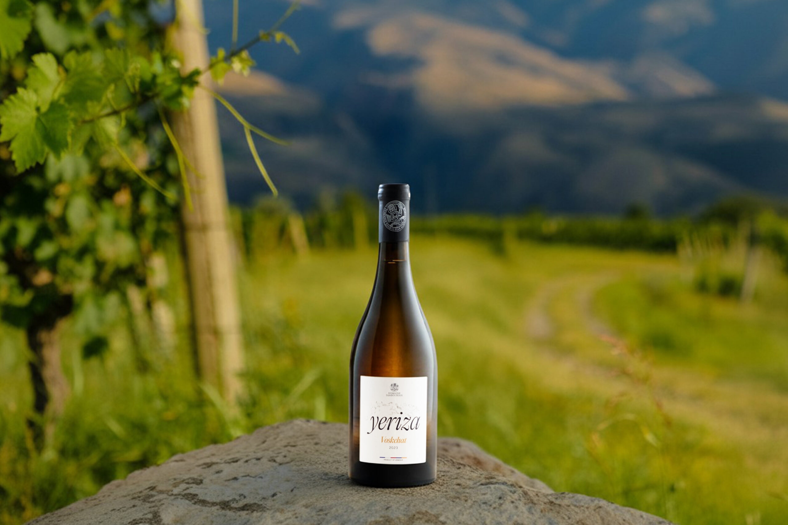 Le millésime 2023 offre une belle robe jaune dorée, d’intenses arômes de fruits type coing et de subtiles notes de fleurs blanches. Il reflète parfaitement le terroir unique d’Aghavnadzor.